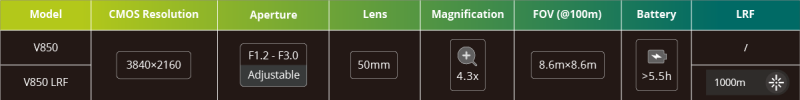 – Ideal basic magnification of 4.9 x and field of view of 7.7 m × 7.7 m
